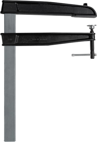 - Т-образная ручка с закруглёнными концами для лёгкой передачи усилия при зажимании
