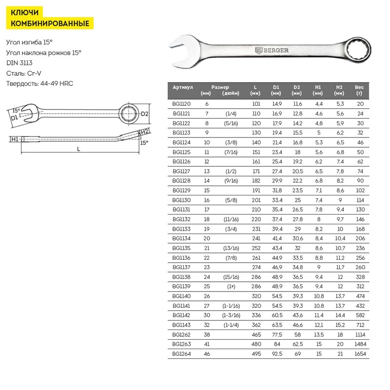 Ключ комбинированный 36 мм Berger BG1261