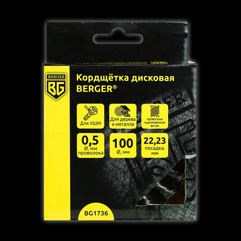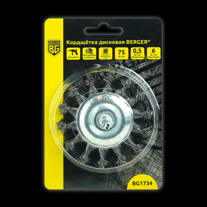 Кордщётка дисковая (латунированная сталь 0.3 мм, диаметр 75 мм, хвостовик 6 мм) Berger BG1730