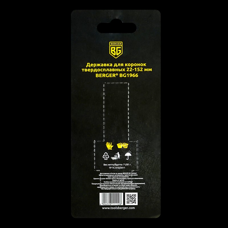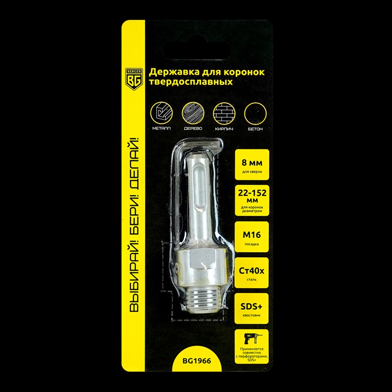 Державка для коронок твердосплавных универсальных ø 22-152 мм, м16, sds+ Berger BG1966