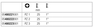 Применение: Пригодны для винтов Pozidriv*)