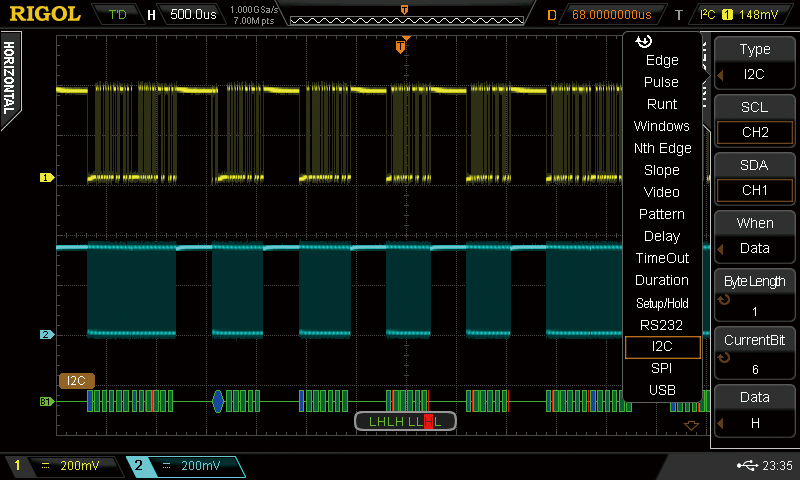 - Опция декодирования для протоколов RS232, SPI, I2C SD-DS2000A