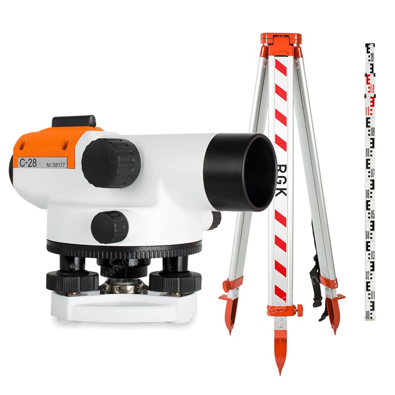 Комплект оптический нивелир RGK C-28 с поверкой + штатив S6-N + рейка RGK TS-7
