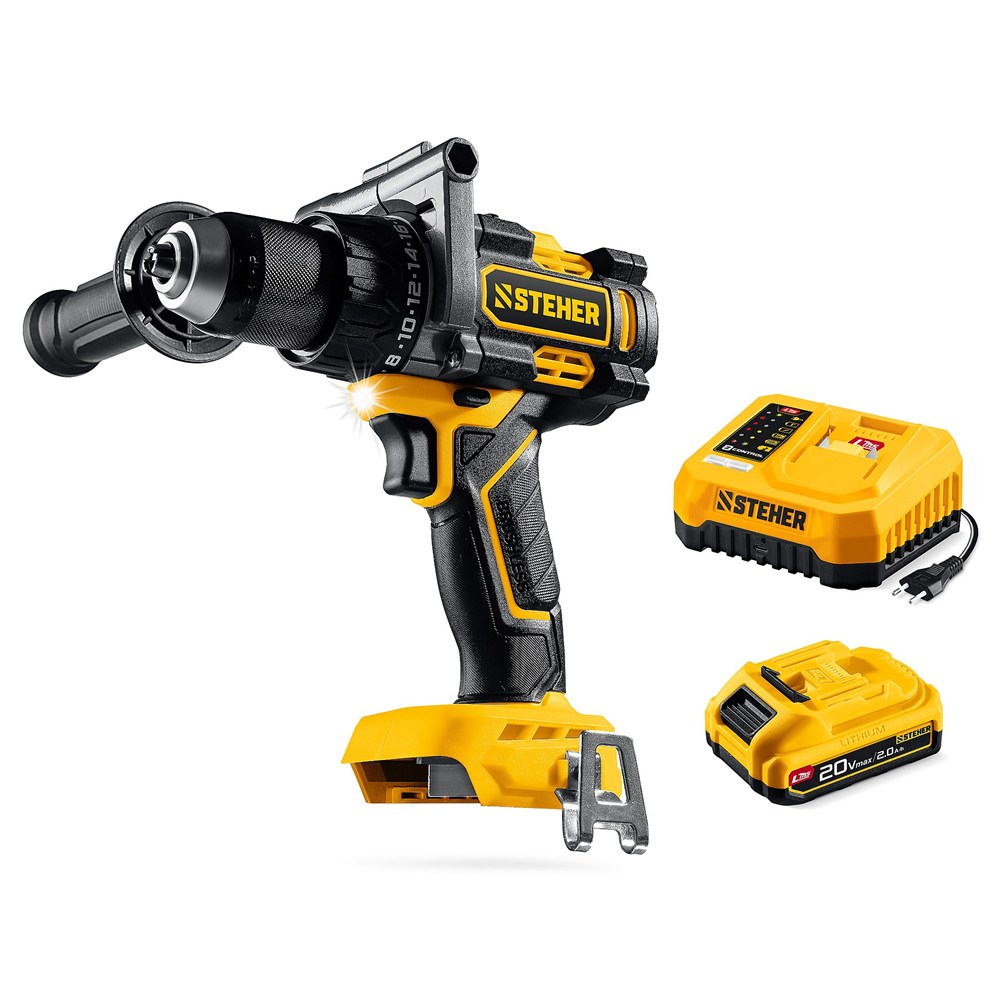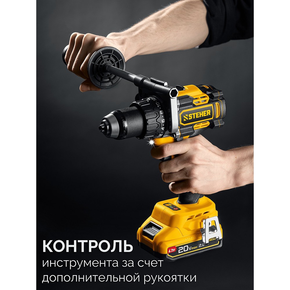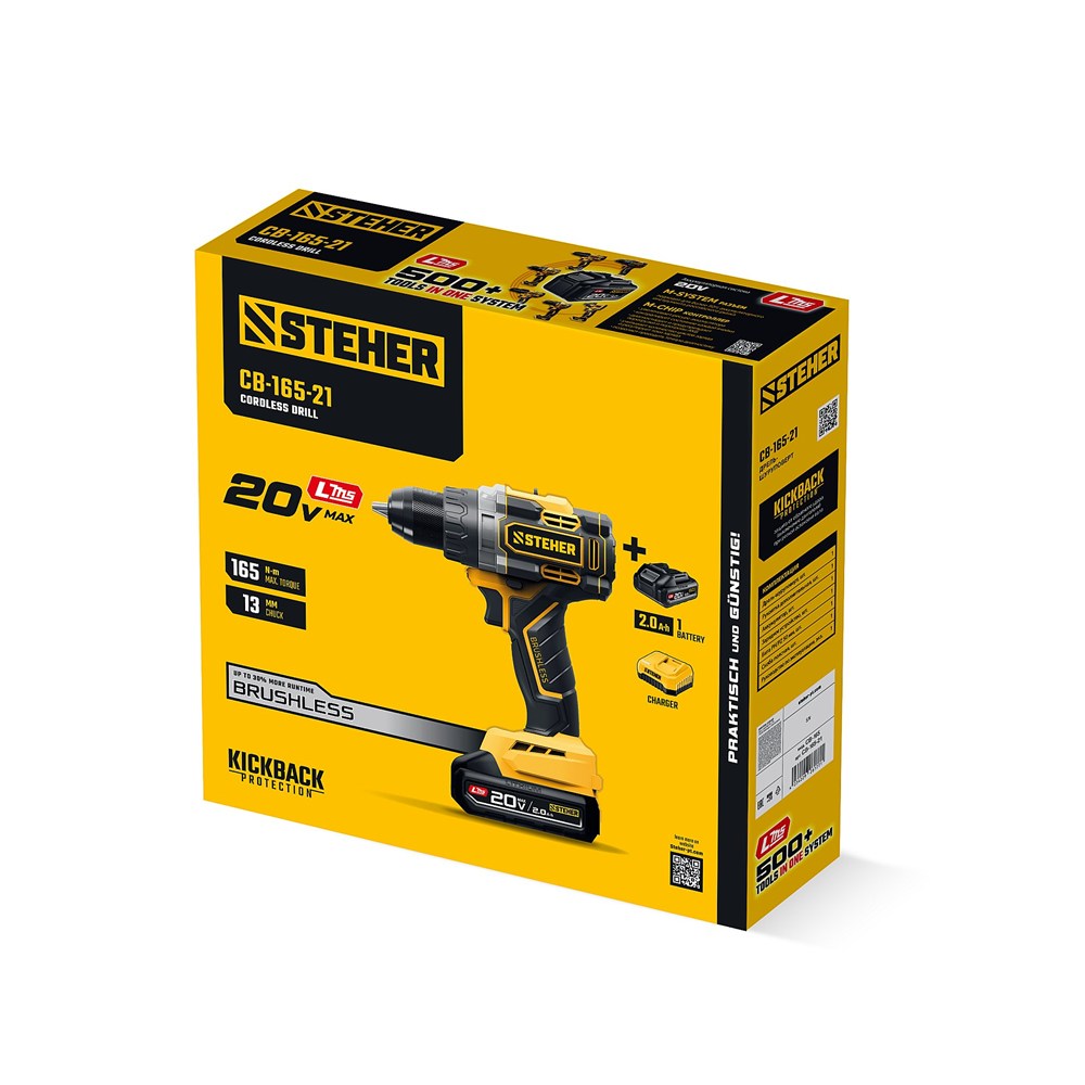 STEHER 20 В, 165 Н·м, 1 АКБ LMS (2 А·ч), бесщеточная дрель-шуруповерт (CB-165-21)