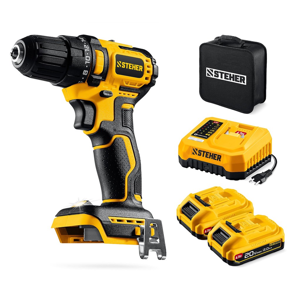 STEHER 20 В, 45 Н·м, 2 АКБ LMS (2 А·ч), бесщеточная дрель-шуруповерт, сумка (CB-45-22)
