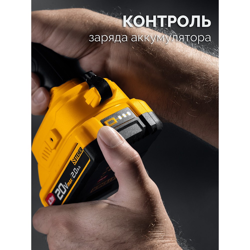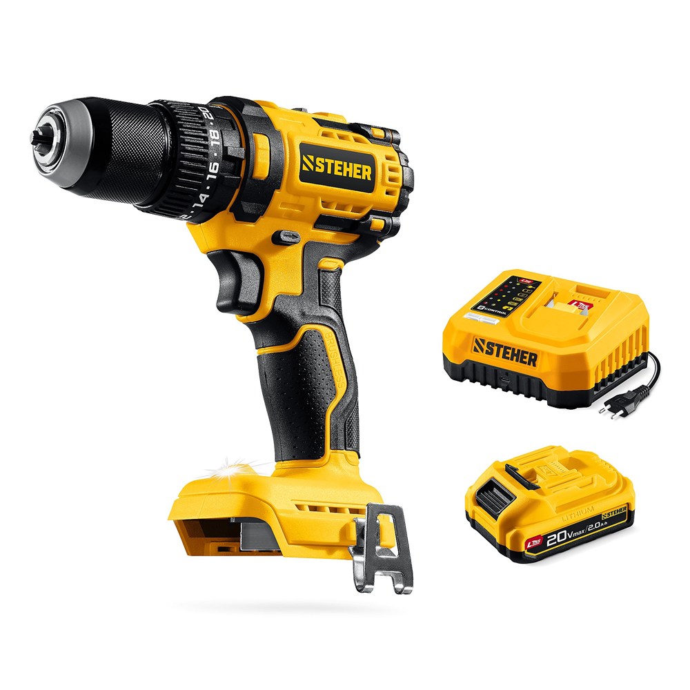 STEHER 20 В, 65 Н·м, 1 АКБ LMS (2 А·ч), бесщеточная ударная дрель-шуруповерт (CBS-65-21)