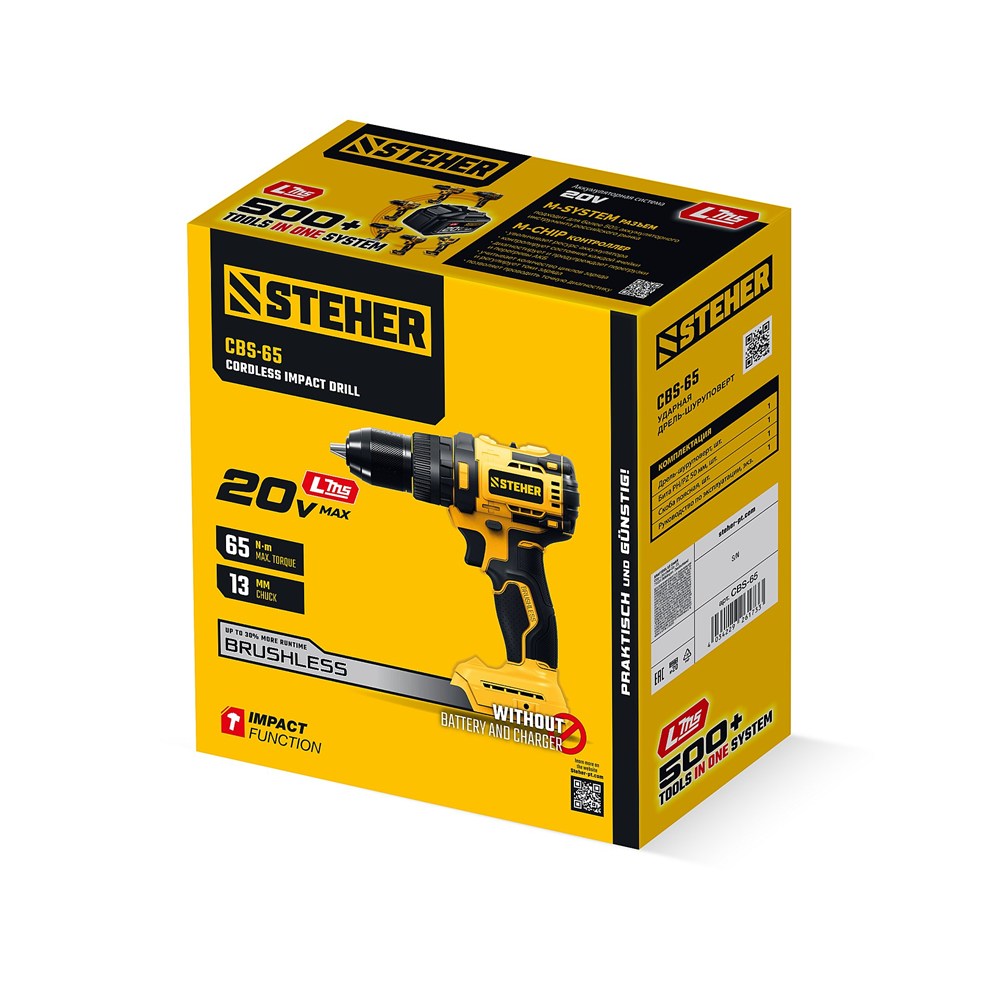 STEHER 20 В, 65 Н·м, без АКБ (LMS), бесщеточная ударная дрель-шуруповерт (CBS-65)