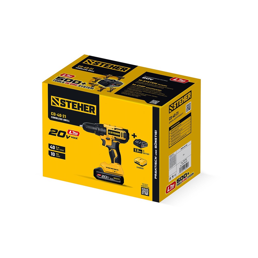 STEHER 20 В, 40 Н·м, 1 АКБ LMS (2 А·ч), дрель-шуруповерт (CD-40-21)
