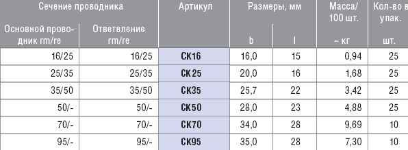 Медные С-образные соединительные зажимы для соединения основного и ответвляющего проводников одинакового сечения, например, по стандарту VDE 0295 класс 1 и 2.
