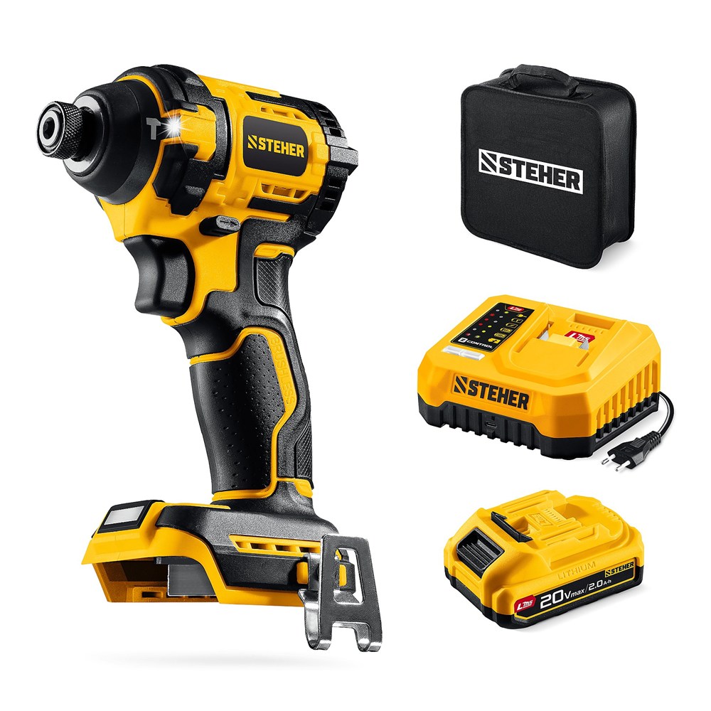 STEHER 20 В, 180 Н·м, 1 АКБ LMS (2 А·ч), бесщеточный ударный винтоверт, сумка (CSB-180-21)