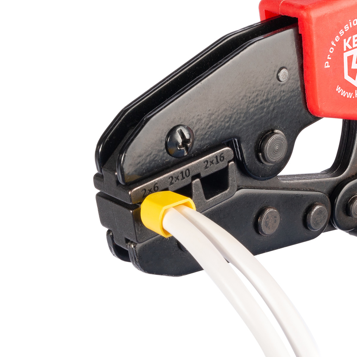 | Назначение, применение | Опрессовка двойных изолированных втулочных наконечников НШВИ (2) сечением 2х6 - 2х16 мм² |
