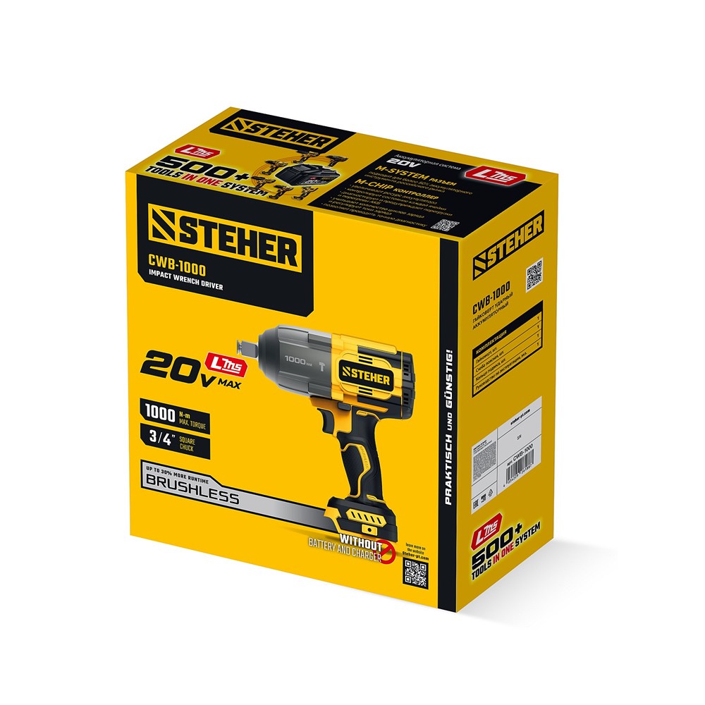 STEHER 20 В, 1000 Н·м, без АКБ (LMS), бесщеточный ударный гайковерт (CWB-1000)