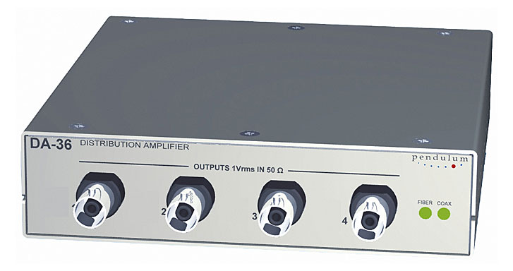 DA-36-10M решает задачу распределения частоты опорного генератора от головного источника к одному потребителю или сразу к нескольким приборам на расстояние не превышающее 2 км.