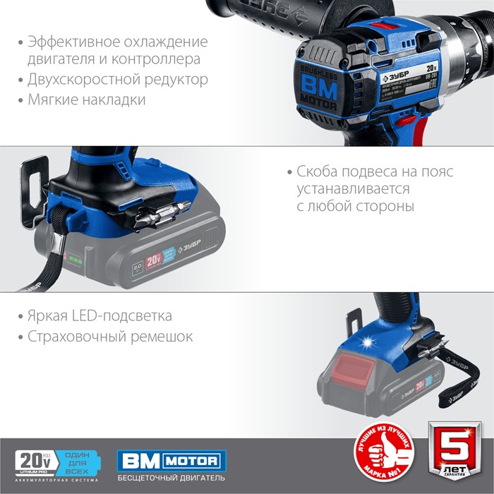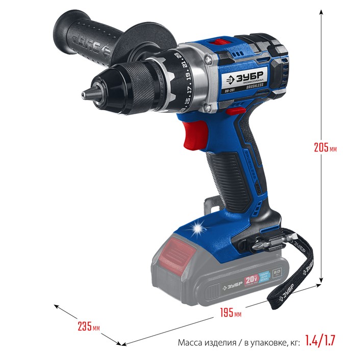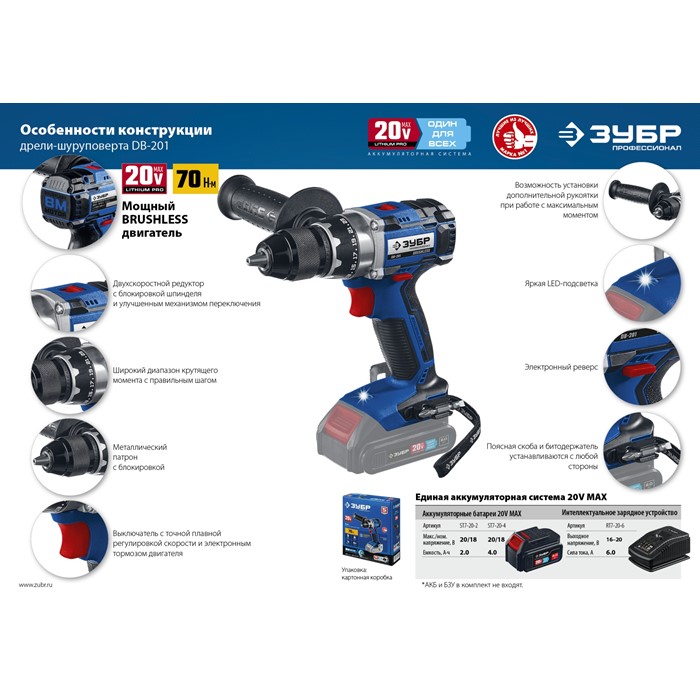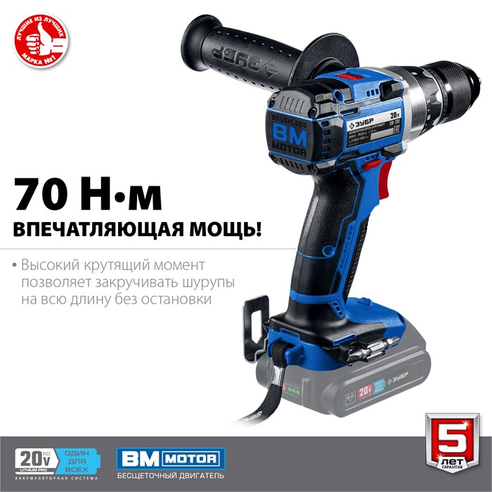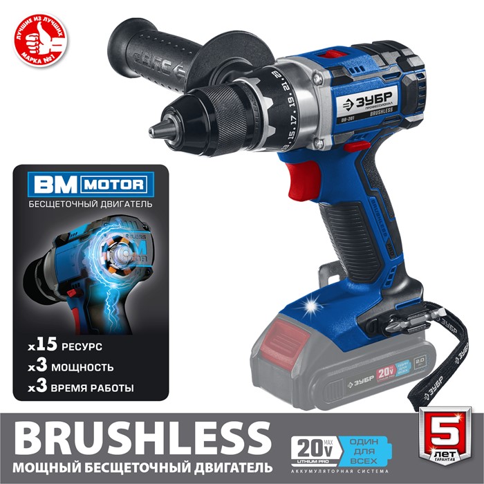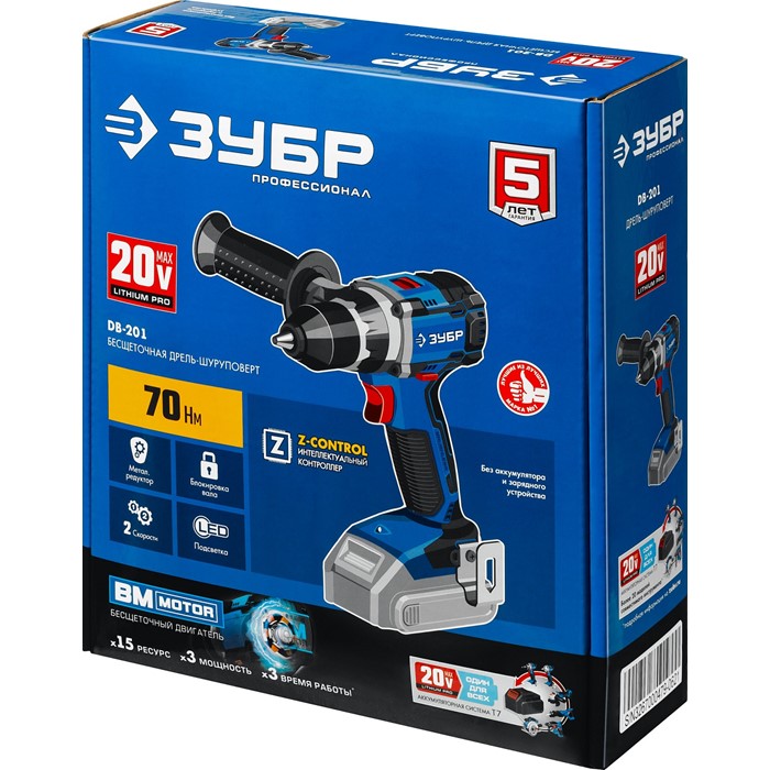 Бесщеточная дрель-шуруповерт, без АКБ, в коробке DB-201 Зубр