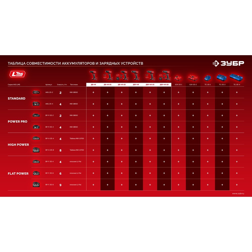 - Аккумулятор универсальной системы LMS повышенной емкости 2.0 А*ч позволяет инструменту работать дольше и эффективнее