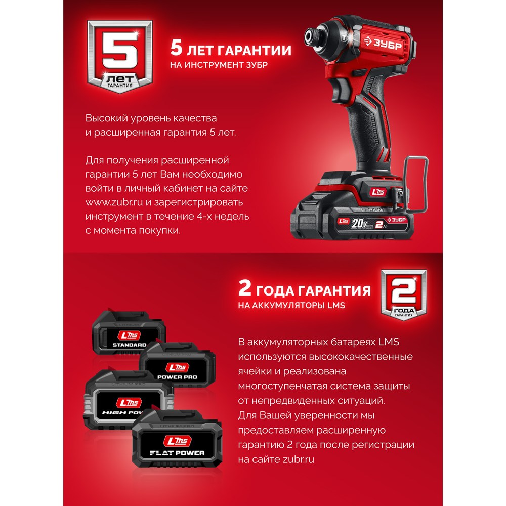 На электроинструменты и бензотехнику «ЗУБР» действует расширенная 5-летняя гарантия. Служба качества контролирует процесс производства на каждом этапе.