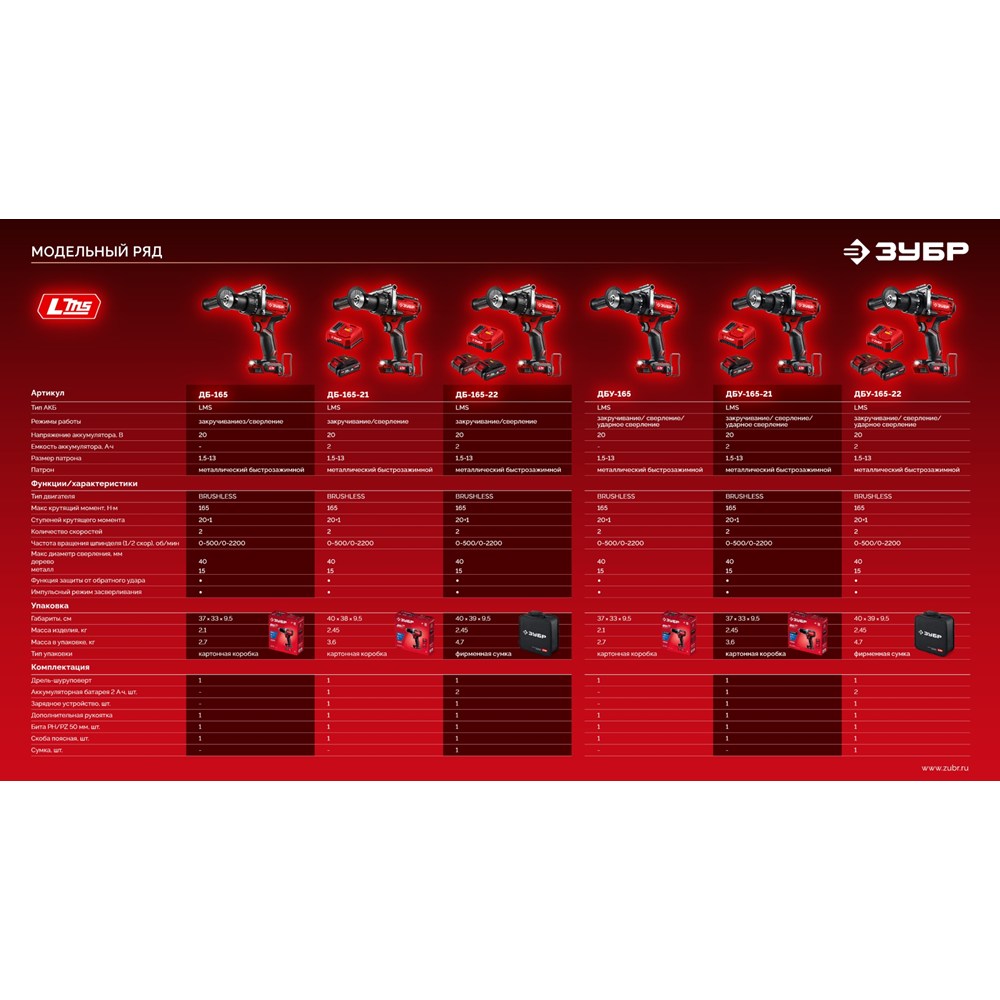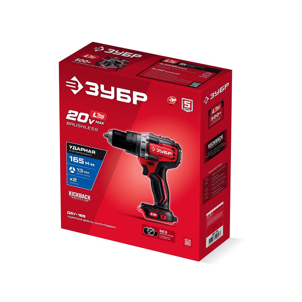 Бесщеточная ударная дрель-шуруповерт (ДБУ-165), 20 В, 165 Н·м, без АКБ (LMS)
