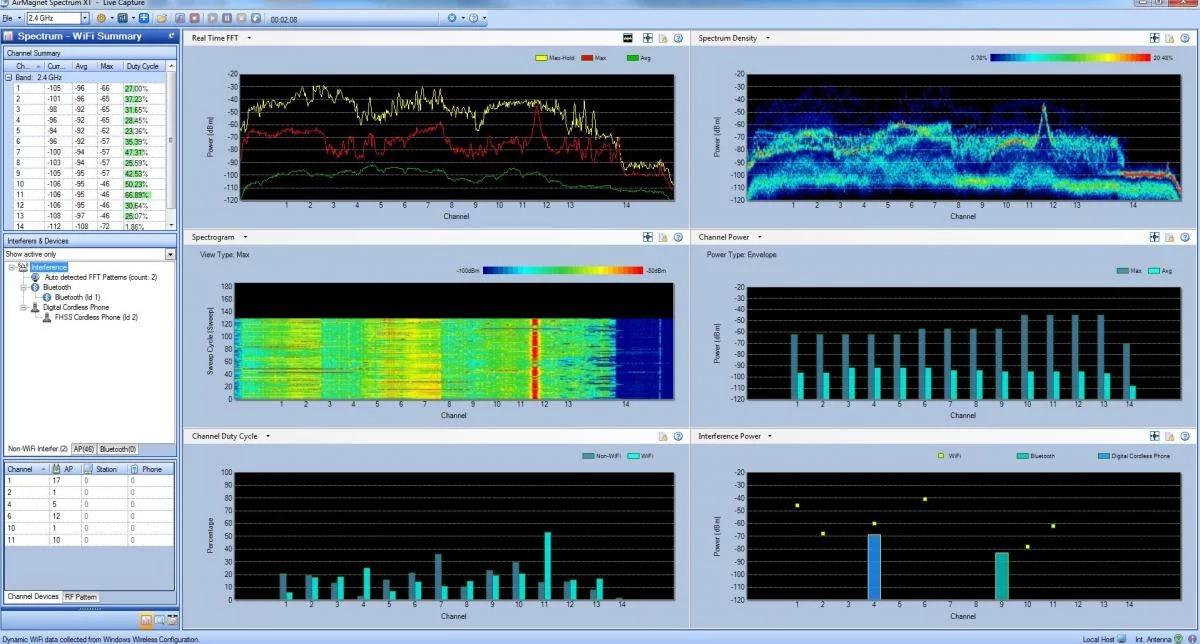 AirMagnet Spectrum XT обеспечивает полный обзор WLAN на физическом уровне для идентификации радиопомех и проблем в окружении, которые влияют на производительность сети. Решение помогает пользователю наглядно увидеть происходящее в РЧ-спектре любой WLAN посредством богатого набора графиков и представлений.