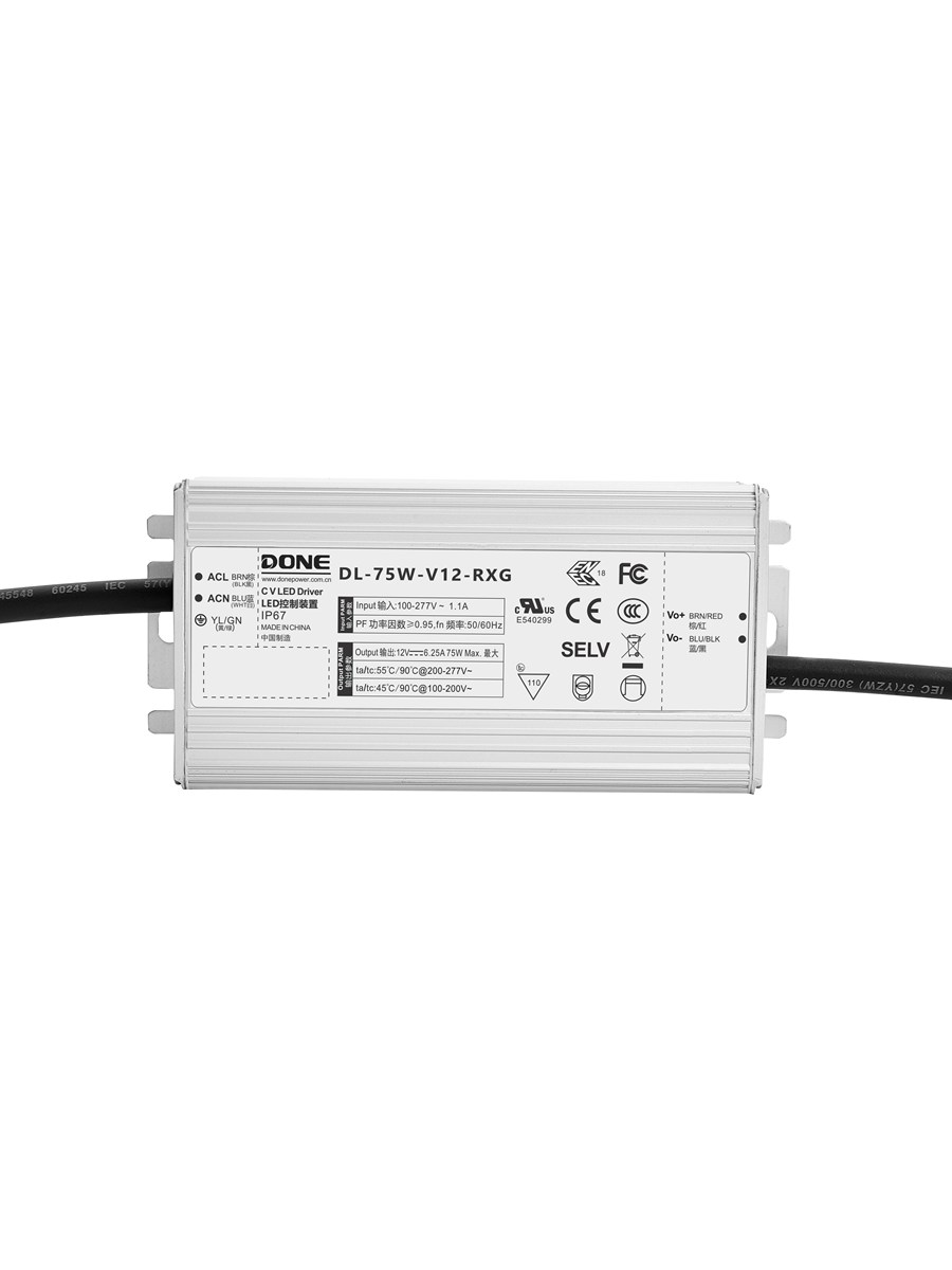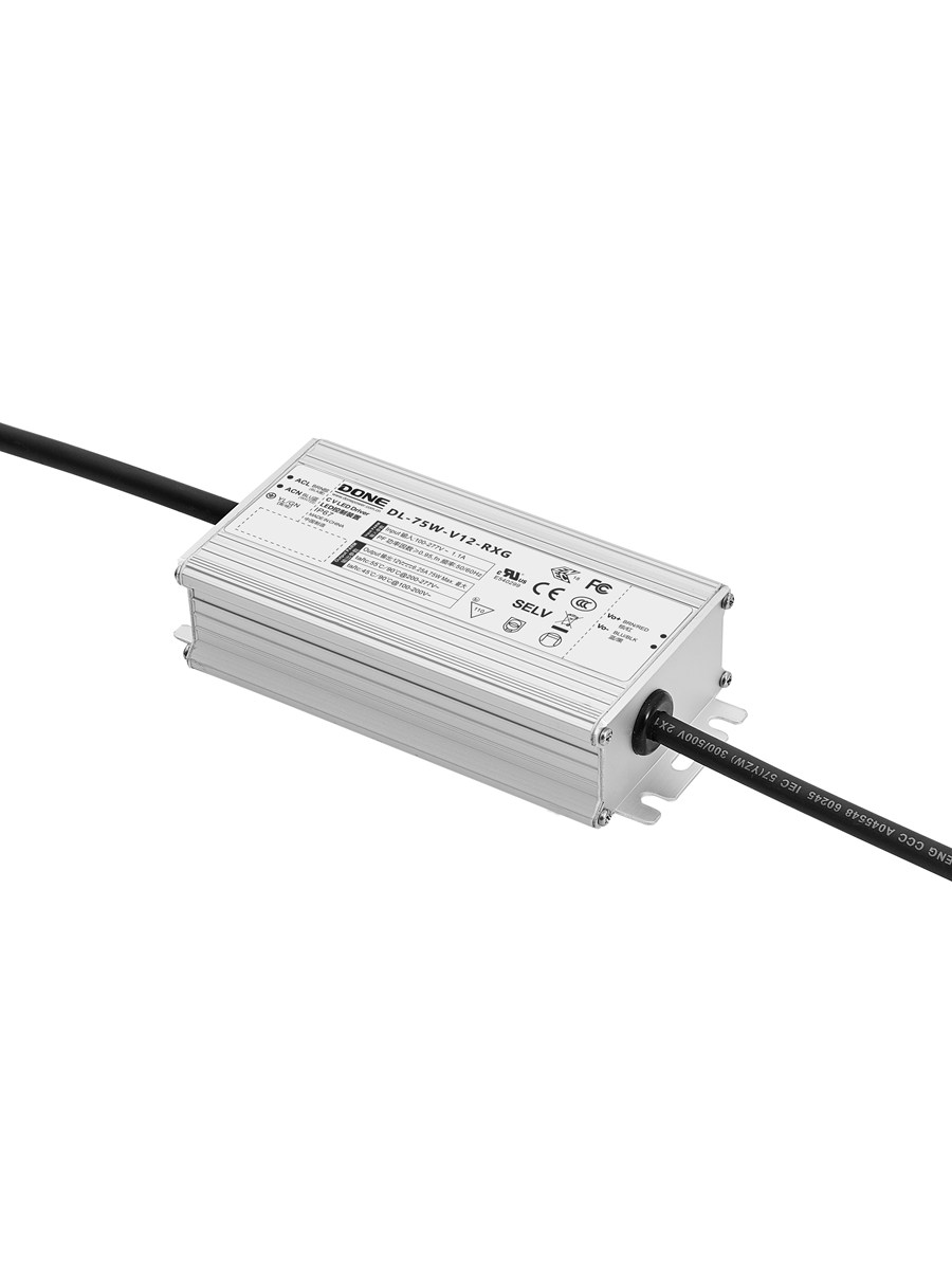 Водонепроницаемый блок питания серии RXG-W со степенью защиты IP67, регулируемой яркостью и постоянным напряжением, работает в диапазоне входного напряжения 90–305 В переменного тока.