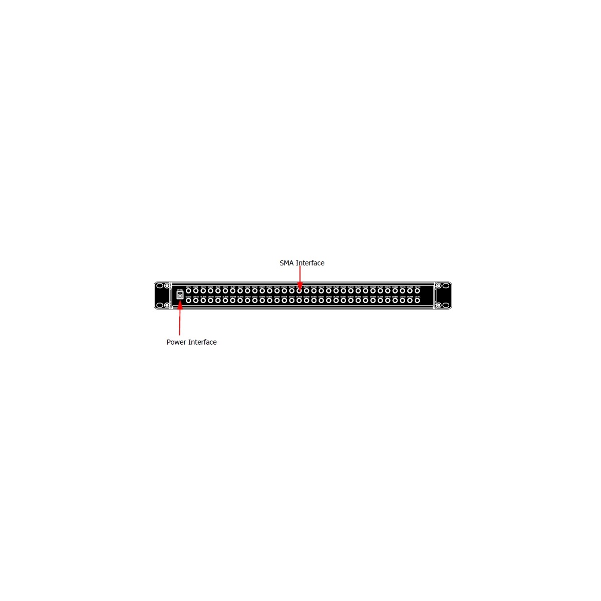 ADS SYNC64 – модуль синхронизации осциллографов, от RIGOL, с одним входом и 64-мя выходами. Представляет собой корпус стоечного исполнения 1U. На передней панели расположены индикатор подачи электропитания, входной разъём SMA для подачи сигнала синхронизации от ведущего устройства. На задней панели расположены разъём подачи электропитания от адаптера и 64-е выходных разъёма синхронизации SMA ведомых устройств.