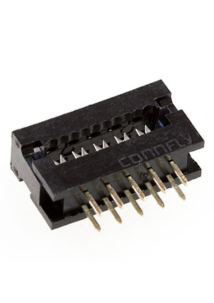 Разъем IDC-DIP 10 конт.(2x5) 2.54x2.54 мм, на шлейф (шаг 1.27 мм), вертик. на плату (аналог FDC-10)