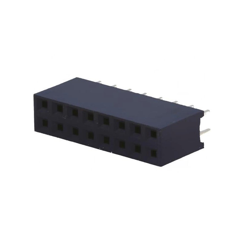 Разъем "гнездо" 16 конт.(2x8) шаг 2.54 мм, вертик. на плату (Hизол.= 8.5 мм), позол. конт.ч./ луж. выводы (аналог PBD-16*)