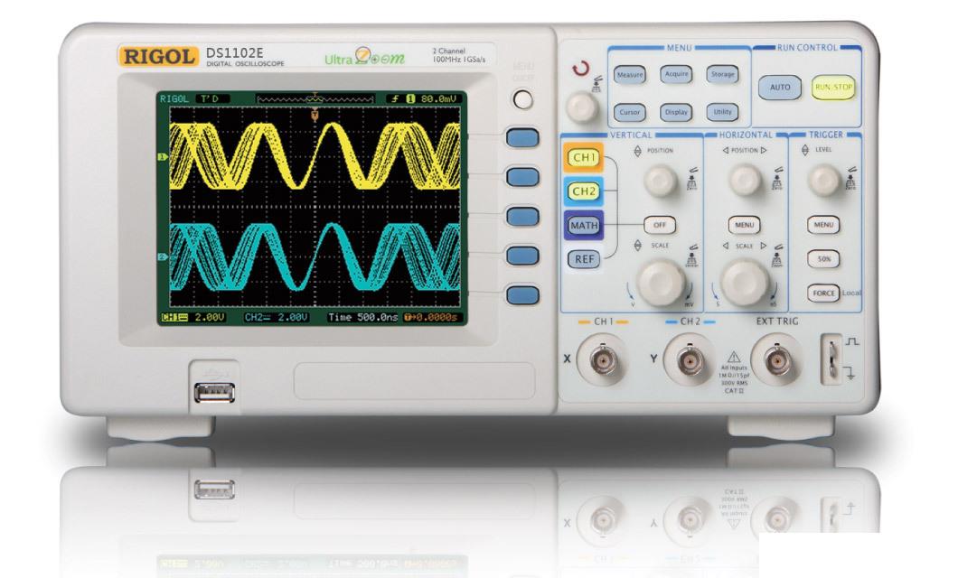 Цифровой осциллограф Rigol DS1102E представляет собой недорогой осциллограф начального уровня. В цифровом осциллографе Rigol DS1102E имеется базовый набор функциональных возможностей, таких как курсорные измерения, автоматические измерения, математические функции, функция анализатора спектра на основе БПФ, тестирование "годен/не годен" и др., что позволяет рекомендовать цифровой осциллограф Rigol DS1102E радиолюбителям, студентам, образовательным учреждениям и организациям с ограниченным бюджетом.