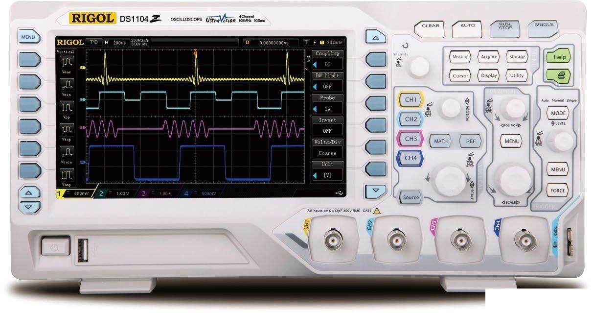Цифровой осциллограф DS1104Z-S является сочетанием широких возможностей по исследованию сигналов и доступной цены. Большая глубина записи, наличие четырех каналов, высокая скорость захвата осциллограмм делают цифровой осциллограф DS1104Z-S идеальным инструментом для различных областей применения.