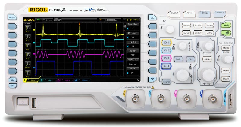 Цифровой осциллограф Rigol DS1104Z-S предоставляет пользователям широкие возможности по доступной цене. Благодаря инновационной технологии UltraVision, большой глубине записи, наличию четырех каналов, высокой скорости захвата осциллограмм цифровой осциллограф Rigol DS1104Z-S является идеальным средством для анализа сигналов при ограниченном бюджете.