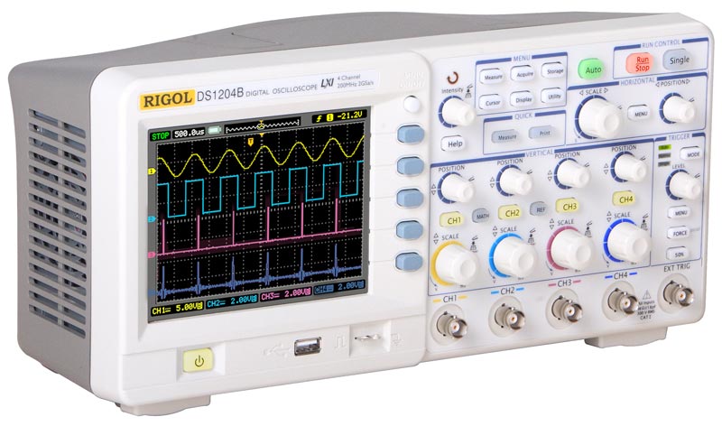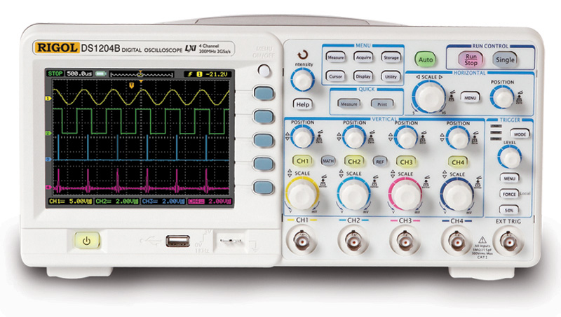 Цифровой осциллограф Rigol DS1204B - это недорогой четырёхканальный осциллограф начального уровня, в котором используется быстродействующий специализированный ASIC процессор.