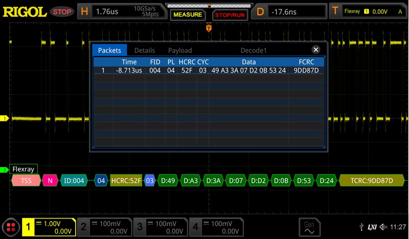 Опция DS8000-R-FLEX добавляет в осциллографы Rigol серии DS8000-R возможность декодирования и запуска по сигналам шин FlexRay.