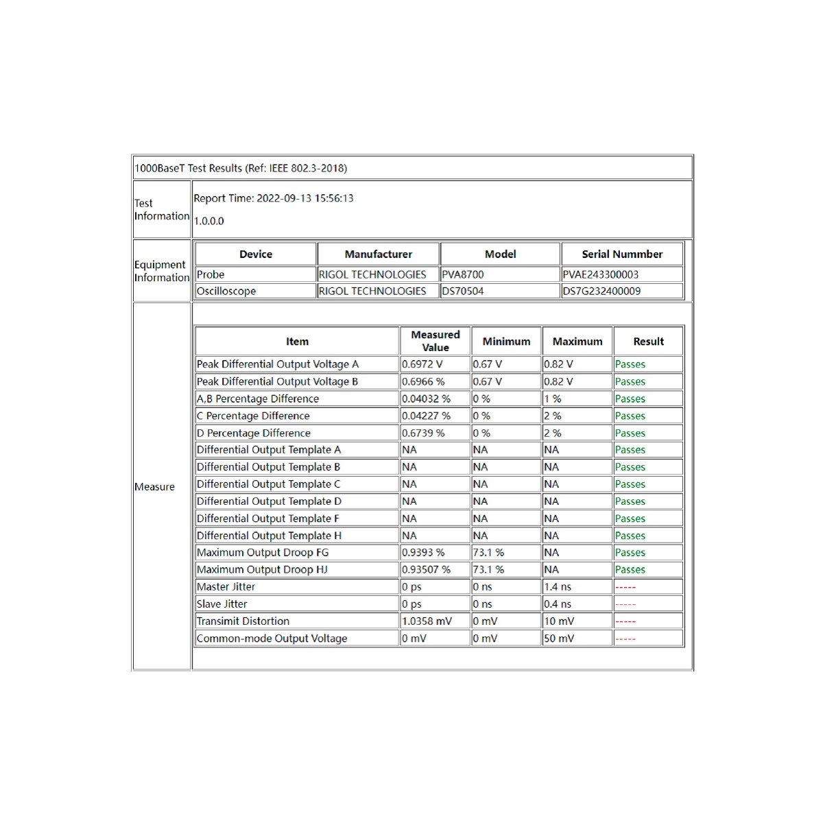 Тест согласованности Ethernet 100M/1000M Rigol DS80000-ENETC
