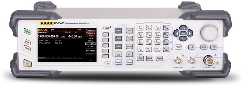 Генератор сигналов высокочастотный Rigol DSG3030 позволяет формировать ВЧ и РЧ сигналы в диапазоне частот от 9 кГц до 3 ГГц. Широкий диапазон частот обеспечивает генератору сигналов Rigol DSG3030 применение при разработке и тестировании средств связи, потребительской электроники, аудио- и видеотехники и др. Помимо СВЧ генератора, модулятора и генератора импульсов, генератор сигналов Rigol DSG3030 дополнительно может иметь входы и выходы векторной I/Q модуляции. Благодаря возможности дистанционного управления генератором сигналов Rigol DSG3030 по интерфейсу LAN (LXI) его можно использовать в измерительных лабораториях любой конфигурации.