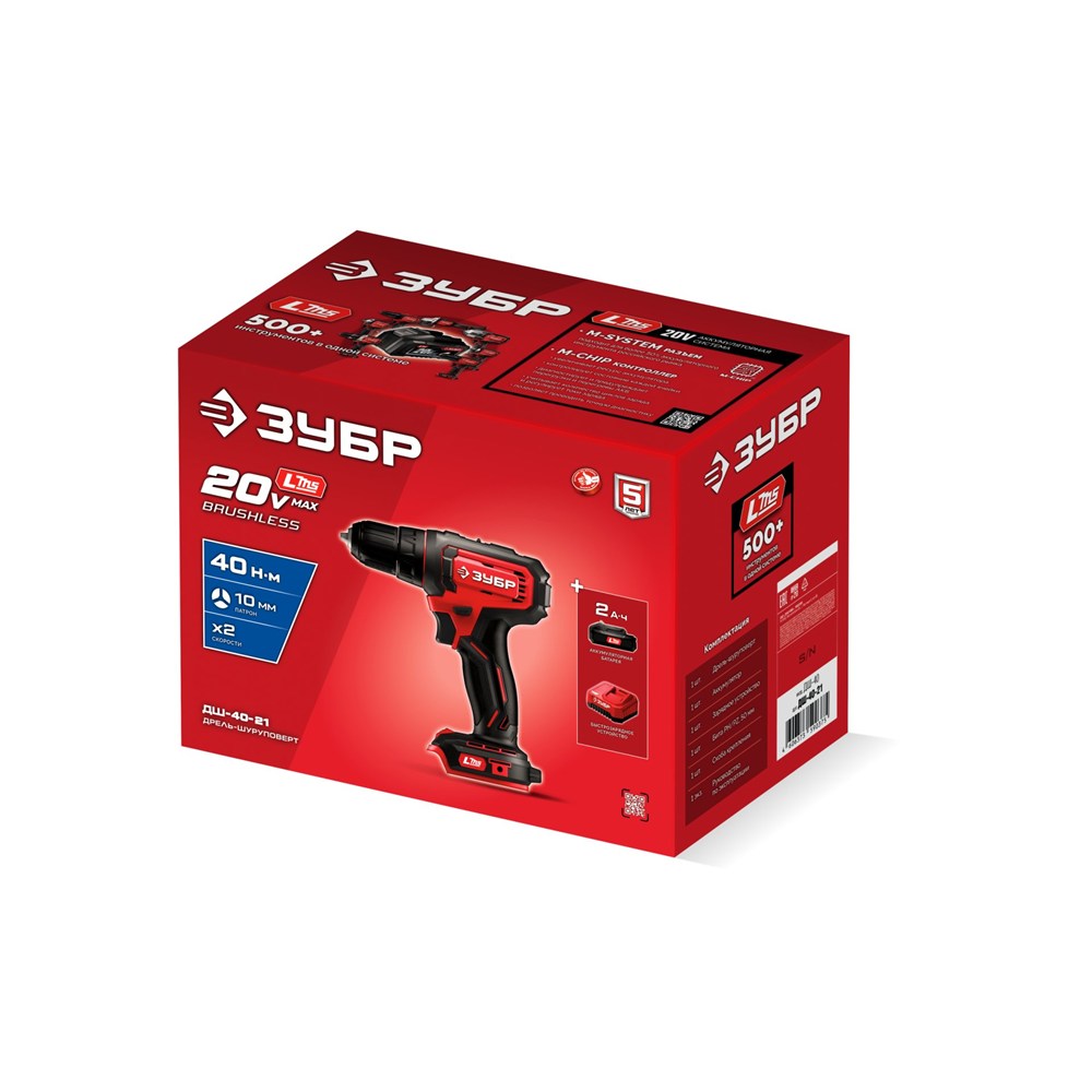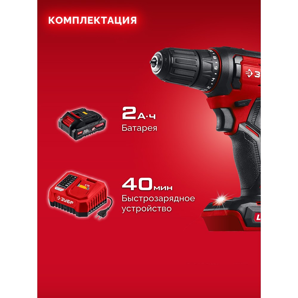 Дрель-шуруповерт (ДШ-40-21), 20 В, 40 Н·м, 1 АКБ LMS (2 А·ч)