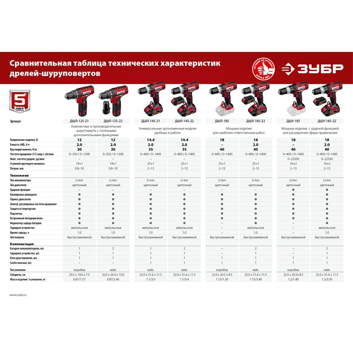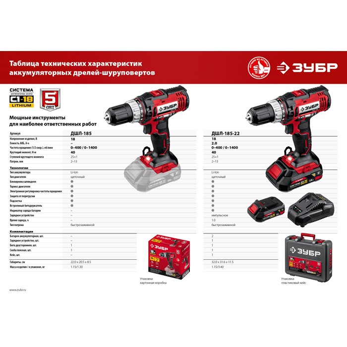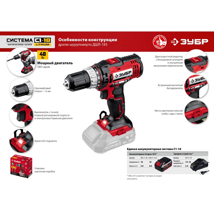 Дрель-шуруповерт ДШЛ-185 Зубр
