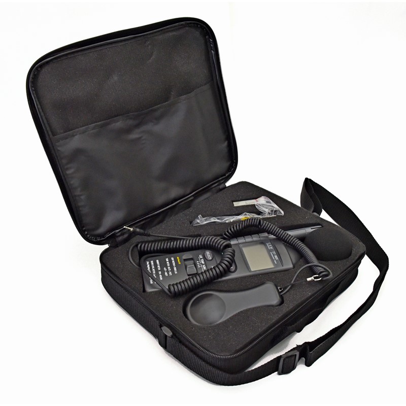 Аксессуары: подарочная коробка с кейсом для переноски, батареи и руководство пользователя, температурный пробник К- образного типа, пробник измерения влажности, светочувствительный пробник.