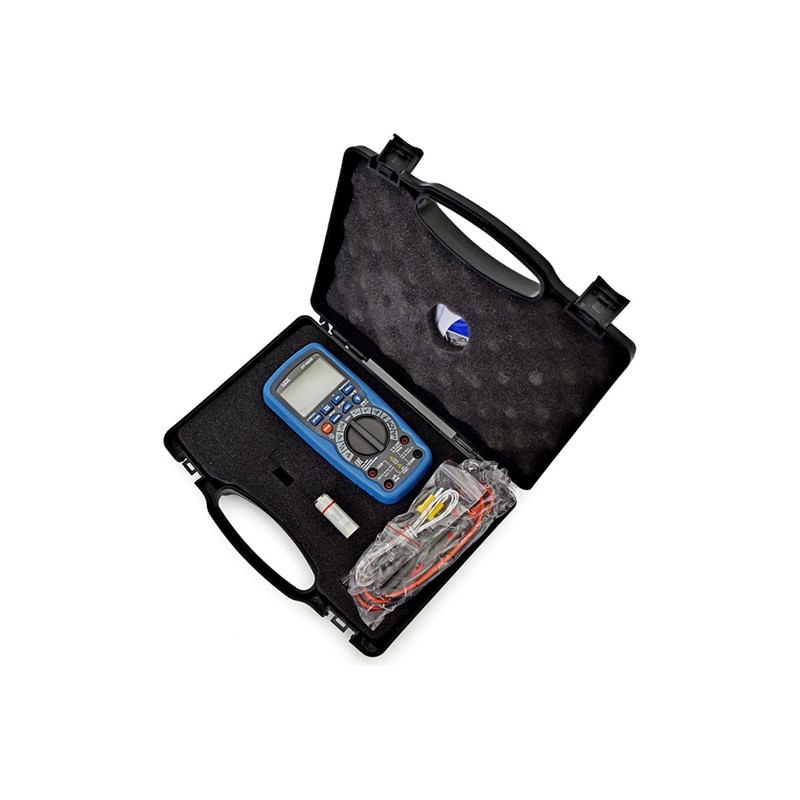 Профессиональный цифровой мультиметр СЕМ DT-9959 481844 оснащается подсвечиваемым экраном LCD, что гарантирует комфортное считывание полученных данных при любой степени освещения. Конструкция прибора позволяет успешно работать как в закрытом помещении, так и на открытой площадке при температуре воздуха от +5 до +40 градусов. Дополнительная возможность мультиметра - измерение температуры от -50 до +1350 градусов с помощью термопары.