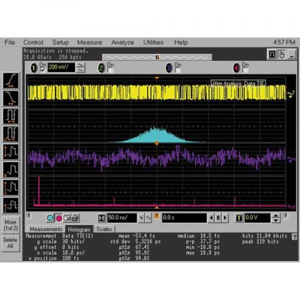 Программный пакет EZJIT Jitter Analysis для анализа джиттера в сочетании с осциллографами Keysight Infiniium является важнейшим инструментом для выявления и определения величины составляющих джиттера, влияющих на надежность разрабатываемого устройства. Коррелированное во времени отображение джиттера и формы сигнала облегчает определение причин возникновения джиттера.