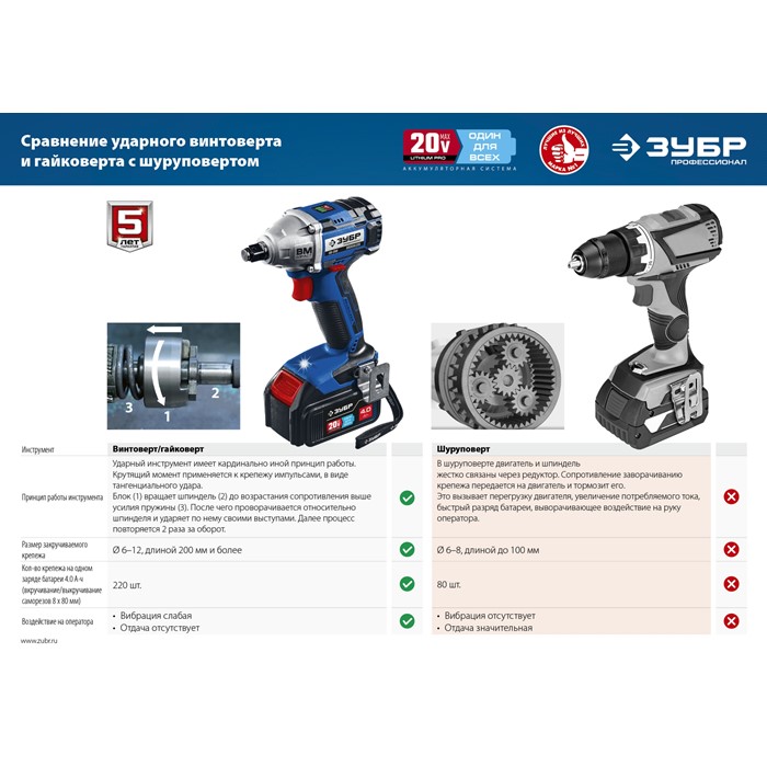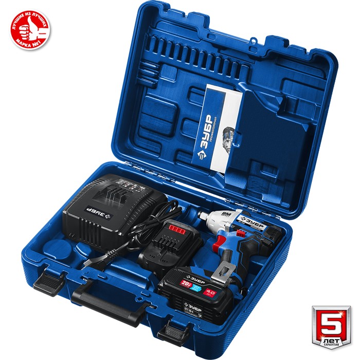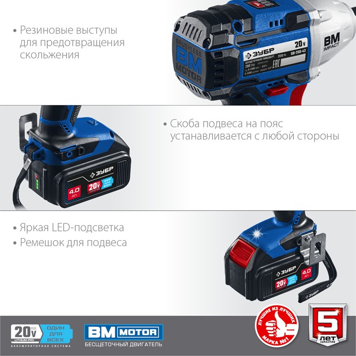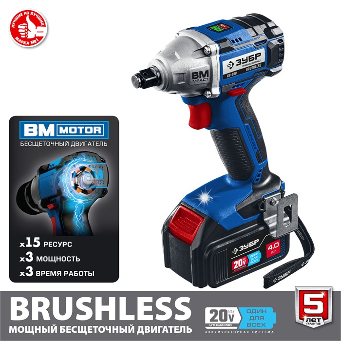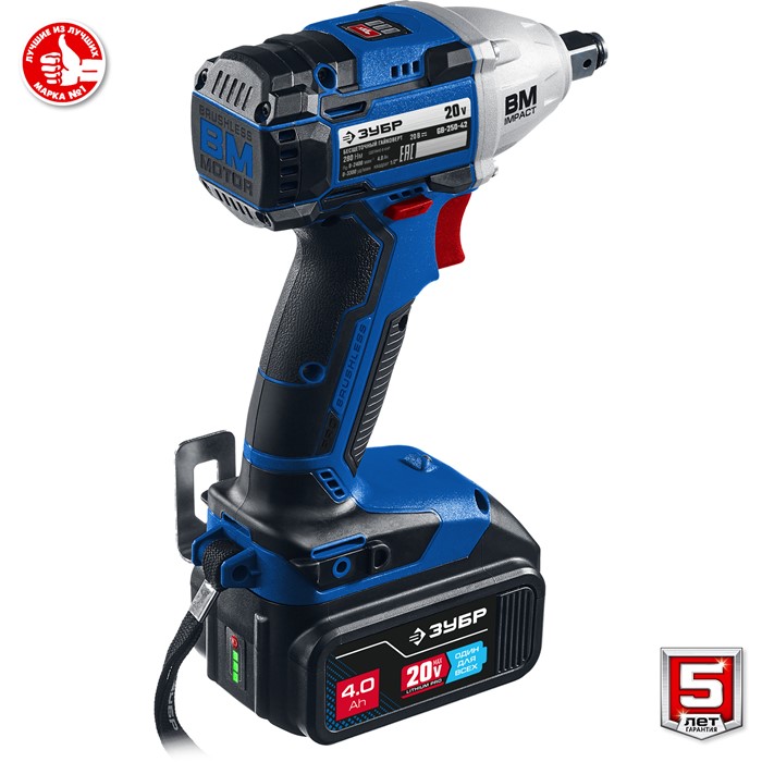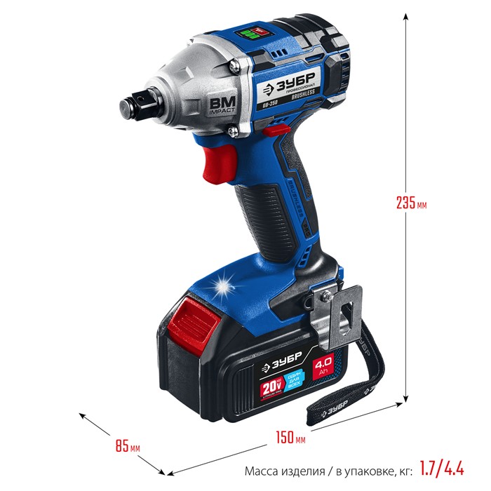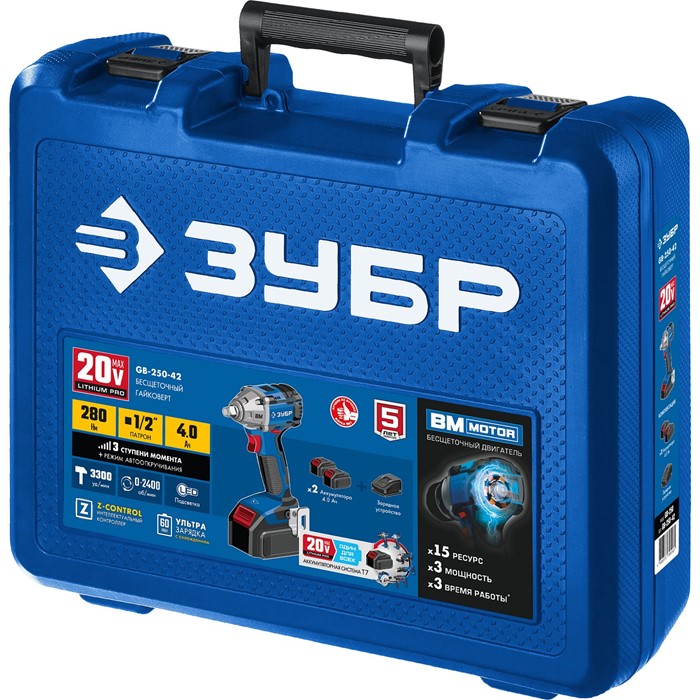 Ударный бесщеточный гайковерт, 2 АКБ (4 Ач), в кейсе GB-250-42 Зубр