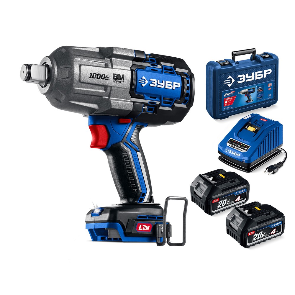 ЗУБР 20 В, 1000 Н·м, 2 АКБ LMS (4 А·ч), бесщеточный ударный гайковерт, кейс, ПРОФЕССИОНАЛ (GB-1000-42)