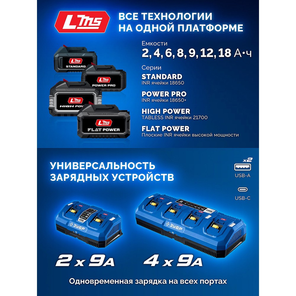 Высокотехнологичная модель в новой линейке аккумуляторного инструмента ЗУБР системы LMS