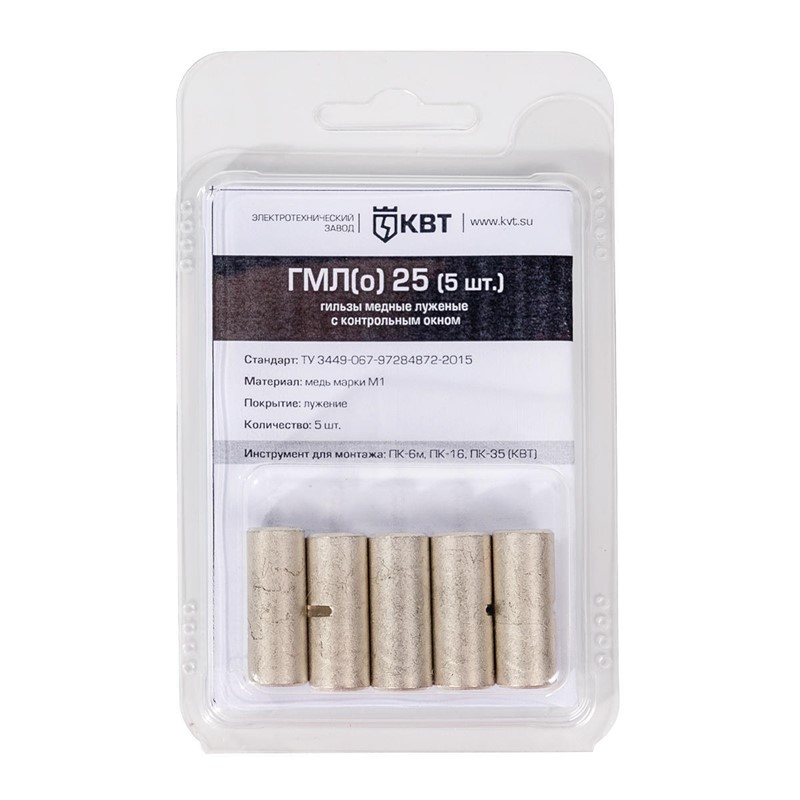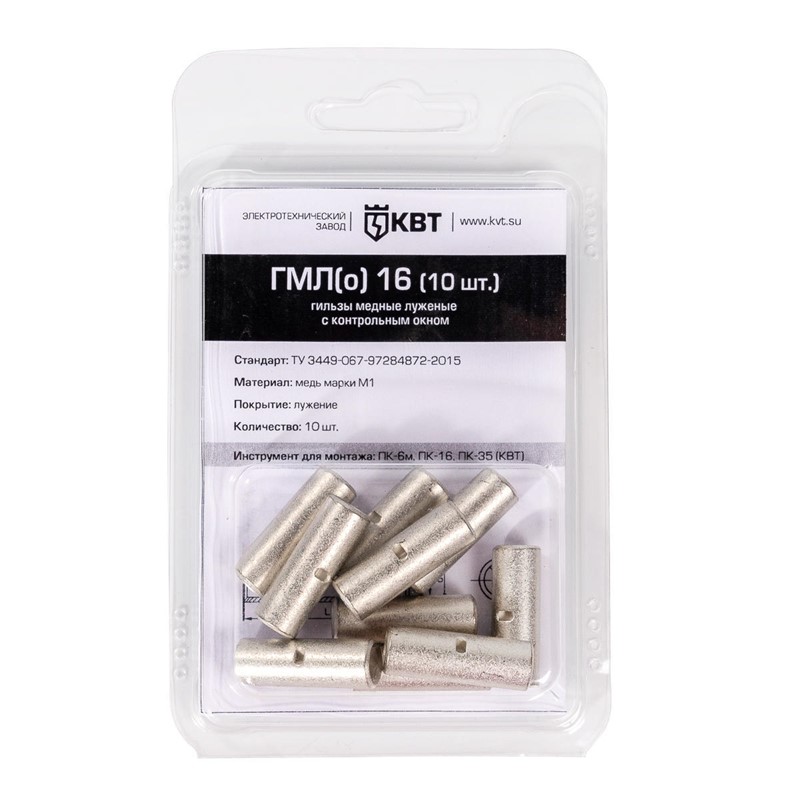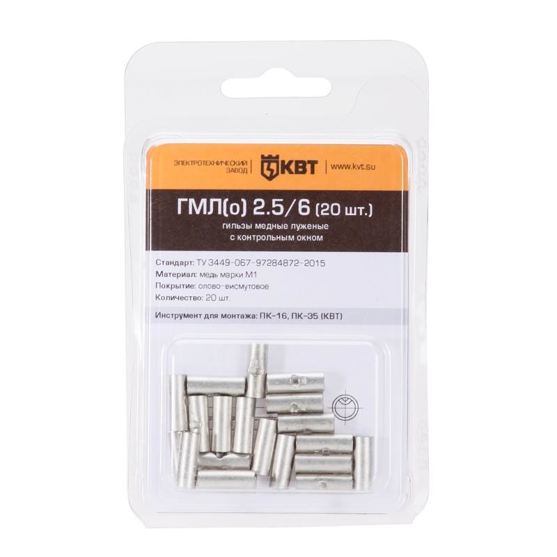 Гильзы медные луженые с технологическим окном в мини-упаковке КВТ ГМЛ(о) в мини-упаковке