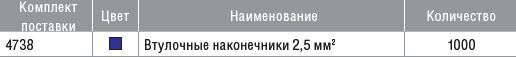 Набор изолированных втулочных наконечников 2,5 мм по стандарту DIN 46228, часть 4.
