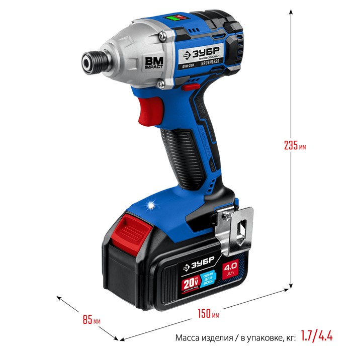 Ударный бесщеточный винтоверт, 2 АКБ (4 Ач), в кейсе GVB-250-42 Зубр