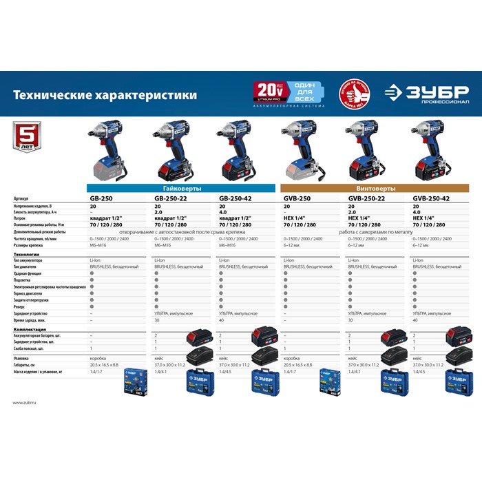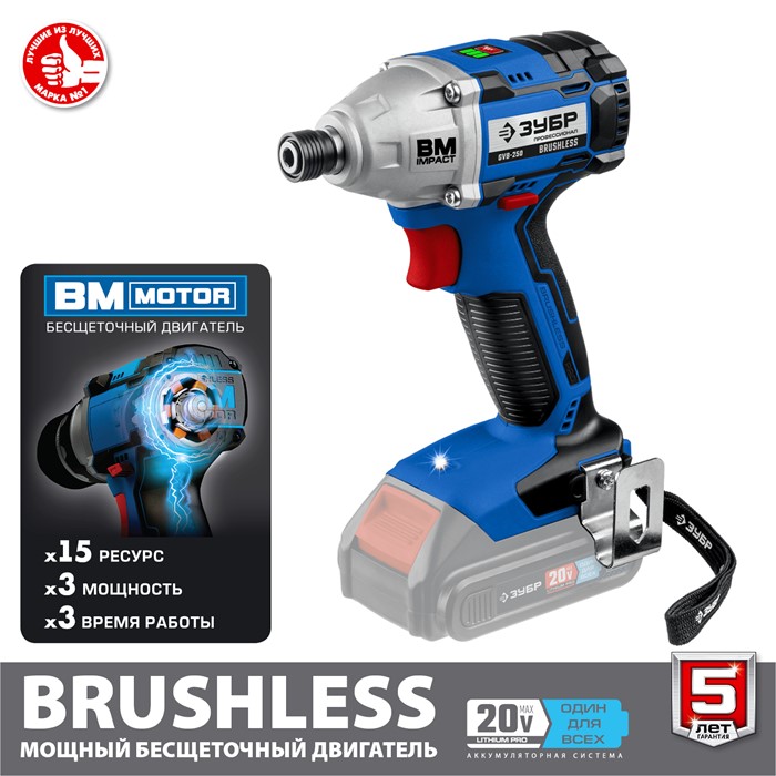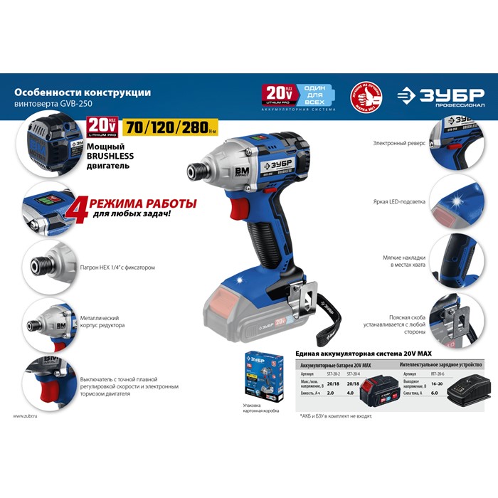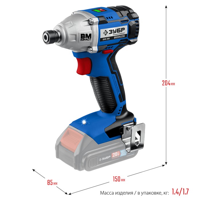 Ударный бесщеточный винтоверт, без АКБ, в коробке GVB-250 Зубр