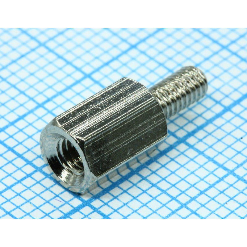 Фиксатор межплатный (стойка 6-ти гранная), высота Aшестигр. = 8 мм, с внешней/внутр. 2-х сторонней резъбой М3, Lвнеш.рез.= 6 мм (никелир. латунь) (аналог PCHSN-8)