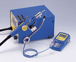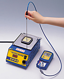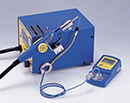 | What should you check when doing a daily inspection of your soldering iron? Grounded soldering irons are maintained by inspecting leak voltage, tip-to ground resistance, and tip temperature. Grounded soldering irons cannot be maintained by checking insulation resistance. This method was used in the past in order to find out the level of leak current. What is 'Leak voltage'?Leak current is the current that leaks from the tip to a board or device. Leak voltage is a specific measurement of the level of this current. The leakage can adversely affect delicate devices, so it is necessary to check leak voltage on a daily basis. Click here for more details regarding leak voltage in station-type soldering irons. What is 'Tip-to-ground resistance'?Most leak current flows from the tip via the ground wire to the outlet ground terminal, and is prevented from affecting the device. Because of this, tip-to-ground resistance is another important issue that must be checked daily. Click here for more details regarding tip-to-ground resistance in station-type soldering irons. Why is tip temperature important?As the tip, element cover and other parts oxidize, heat conduction deteriorates and the tip temperature becomes lower. This causes the difficulty of soldering. Therefore, tip temperature should be inspected daily to have better soldering. Click here for more details regarding tip temperature in station-type soldering irons. | ||||||