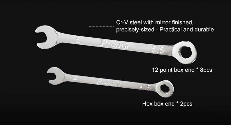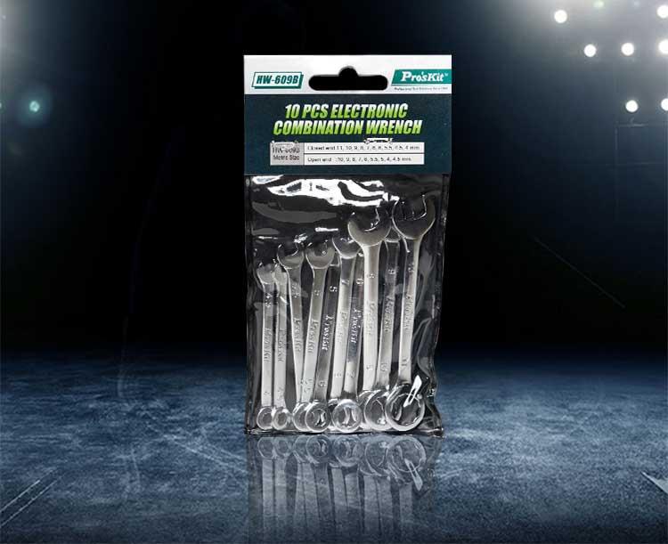 Набор ключей ProsKit HW-609B состоит из 10 комбинированных ключей для точных работ. Каждый из ключей оснащен открытым зевом.