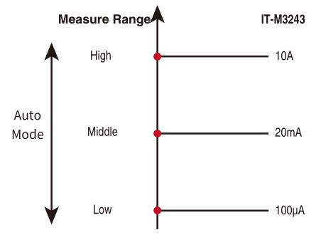 IT-M3200 provides multi-level (Low/Middle/High/Auto) current range switching, with esolution up to 10nA, to meet the current measurement needs from Amp level to micro-amp level. The user can realize the flexible switching between low and high current measurement at the Auto level, no need to control manually. This function is suitable for testing in the fields of 5G, wearable devices and other low power consumption products.