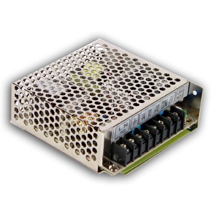 AC-DC, 50Вт, вход 88…264В AC, 47…63Гц /125…373В DC, выход1: +5В/0.5…6A, выход2: +12В/0.2…1.5A, выход3: -5В /0…1A, выход4: -12В/0…1А, изоляция 3000В AC, в кожухе 99х97х35мм, -20…+70°С
